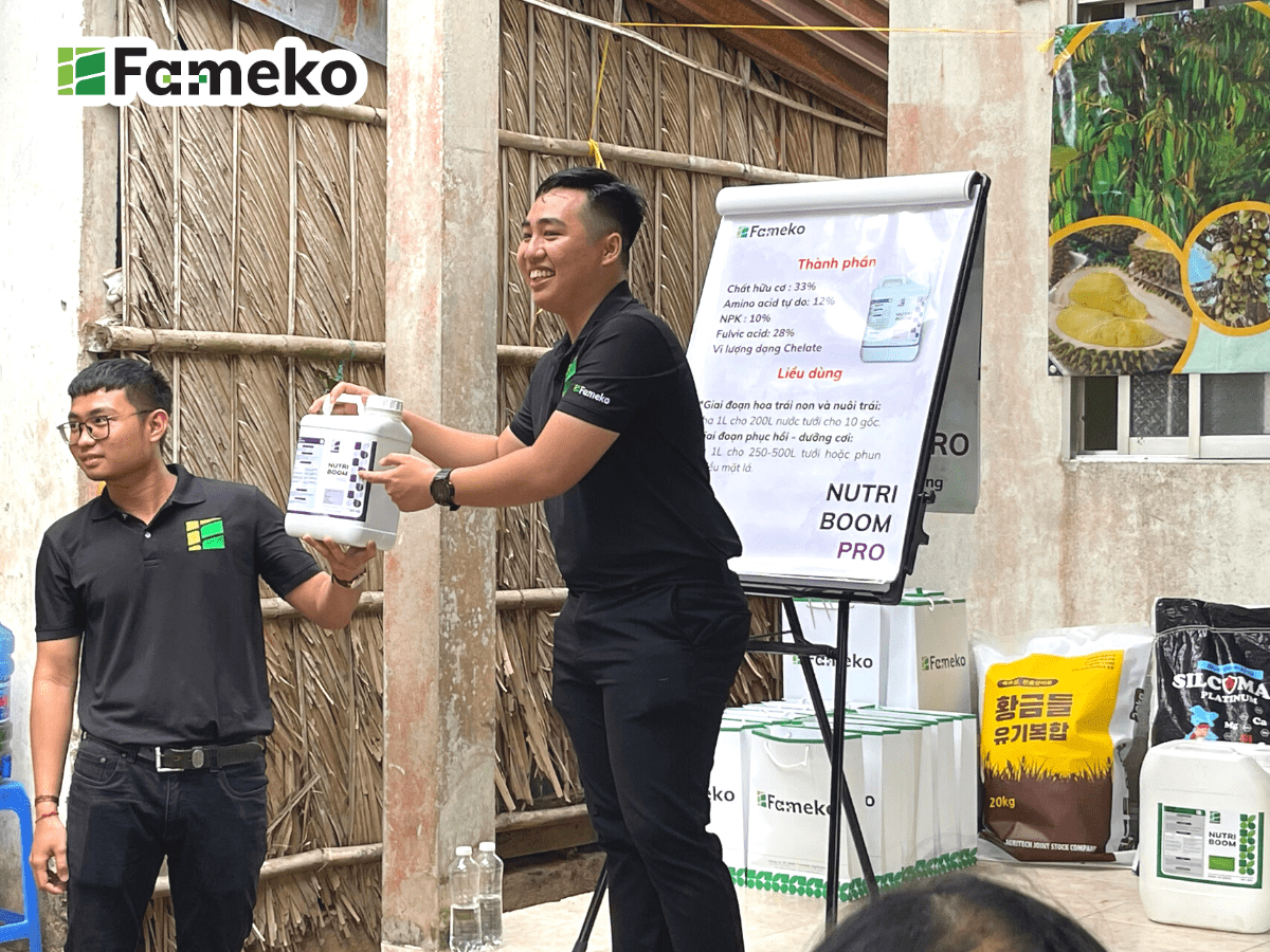 Để đáp ứng nhu cầu của Quý bà con, cũng như đồng hành cùng nhà vườn trong việc chăm sóc bổ sung dinh dưỡng cho cây. Fameko mang đến giải pháp Nutri Boom Pro giúp bà con canh tác sầu riêng được thuận lợi, nâng cao chất lượng và năng suất Sầu riêng.