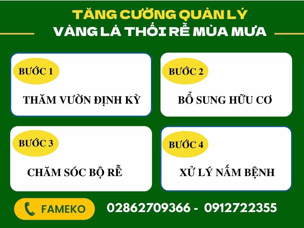 Như vậy, việc chủ động thực hiện các biện pháp phòng bệnh vàng lá thối rễ đúng thời điểm sẽ mang lại hiệu quả và tiết kiệm thời gian, công sức cho nhà vườn. Với những thông tin bên trên, FAMEKO mong muốn sẽ mang lại những kiến tứ bổ ích cho nhà vườn, giúp bà con bảo vệ vườn cây ăn trái khỏe mạnh qua mùa mưa. Kính chúc bà con một vụ mùa bội thu!