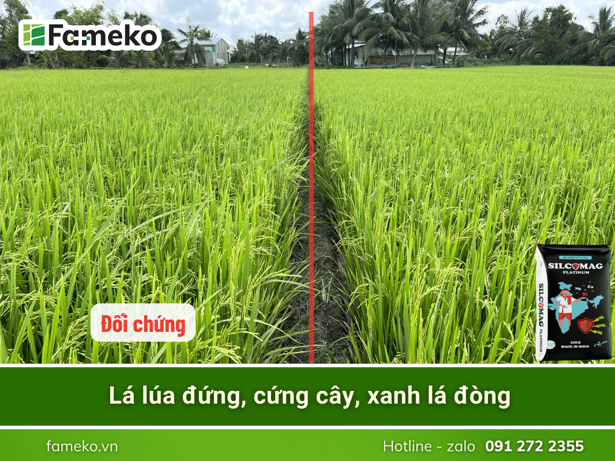 - Khi bổ sung đầy đủ Silic, cây lúa sẽ đứng thẳng, giúp tăng khả năng quang hợp, thân cứng ít bị đổ ngã, giảm được tỷ lệ hạt lép và lửng.